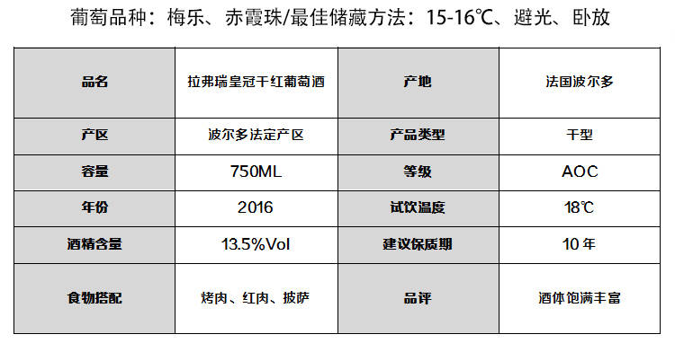 法国原瓶进口红酒2016拉弗瑞皇冠干红葡萄酒